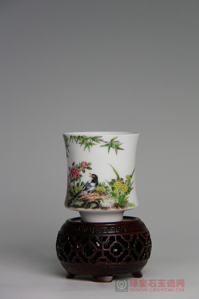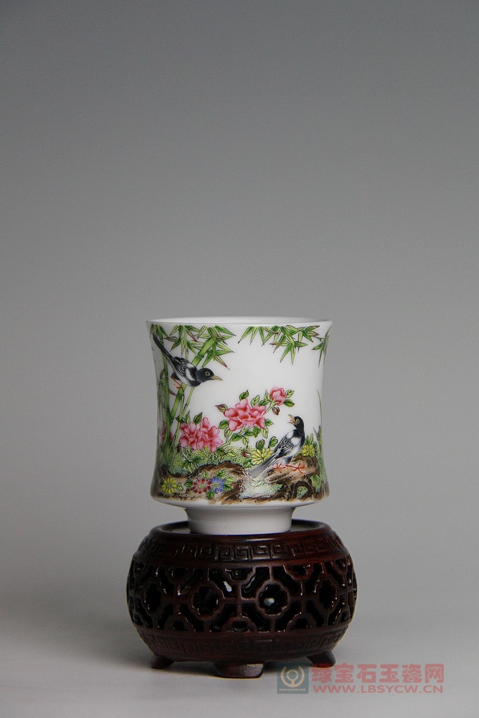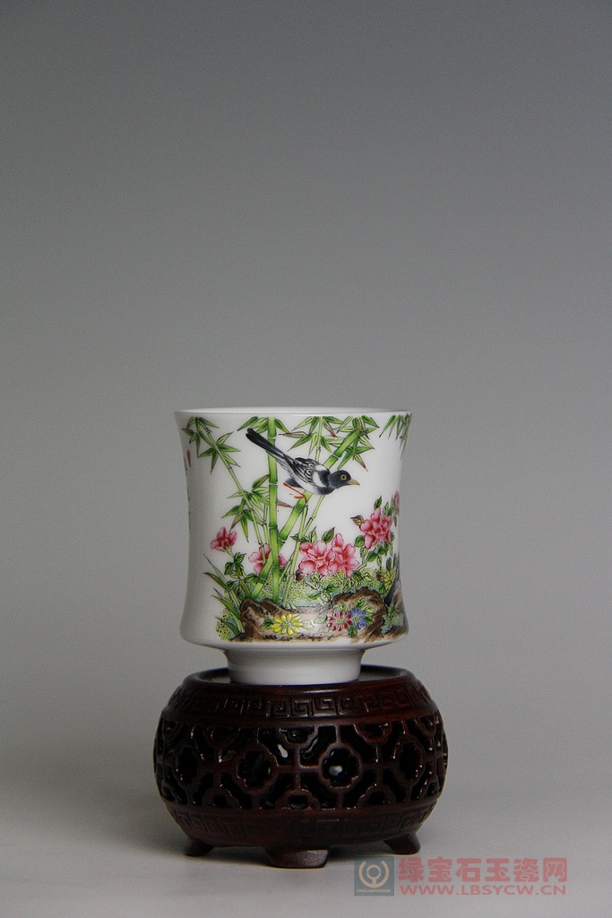 【珐琅彩】花鸟竹节杯